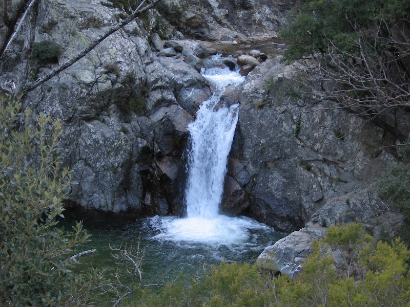 L'ascension continue, nous rallions le Col de Millères à 830m vers le camping des Sauterelles, et l'on embraye direct par la route forestière des Cortalets qui va nous en faire baver... Une vingtaine d'épingles à avaler avec des revêtements multiples : goudron défoncé, béton, zones de caillasses, quelques racines... La montée est heureusement progressive, on monte au train et on fait une pause sandwichs au soleil à 1250m. Elle fait du bien celle là, mais il en reste encore à grimper. Remonter sur le vélo fait mal aux cuisses, on poursuit l'ascension chacun à notre rythme. Ravitaillement en eau effectué grâce à une source vers le ravin de Las Bigues. Nous arrivons à hauteur d'un refuge à 1600m et la grimpette continue. J'ai mal au c*l et aux jambes, j'ai mis tout à gauche depuis le début, mais le 24x32 se fait de plus en plus dur à tirer.